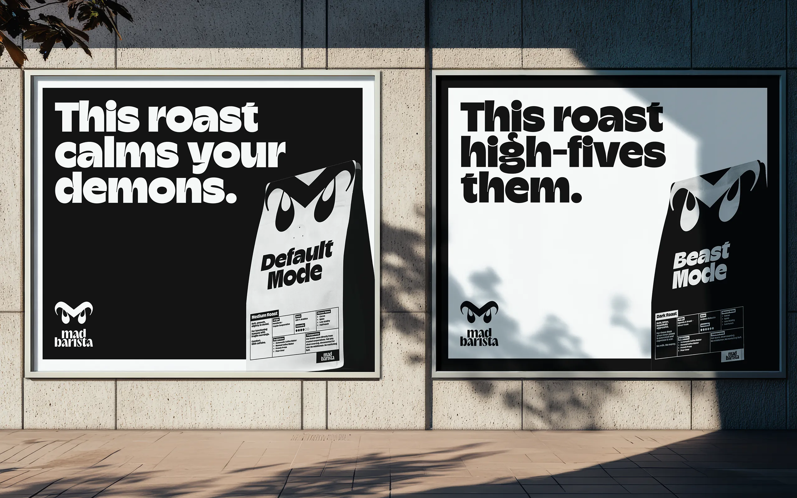 Mad Barista ist ein urbanes Coffee-Brand-Konzept mit Haltung: kompromisslos im Geschmack, klar in der Kommunikation und schwarzweiß in der Gestaltung – im besten Sinne. Ziel war es, eine eigenständige Identität zu schaffen, die den überdrehten Kaffeemarkt kontert – mit klarem Design, maximaler Typografie und einer Prise Wahnsinn.